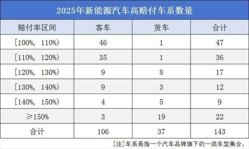 赔付率超过100%(尚未考虑财险公司日常经营管理费用成本)的高赔付车系有143个,较上年增加6个,其中客车106个、货车37个。