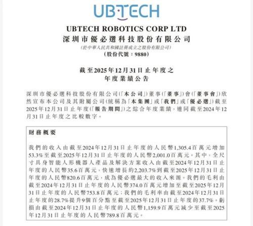去年底于港交所上市的卧安机器人交出了上市后的首份年报,2025年收入9亿元,同比增长47.7%。卧安机器人聚焦智慧家庭场景,公司接近九成营收来自AI具身家庭机器人系统产品,2025年该等产品收入8.07亿元,同比增长约47.6%。