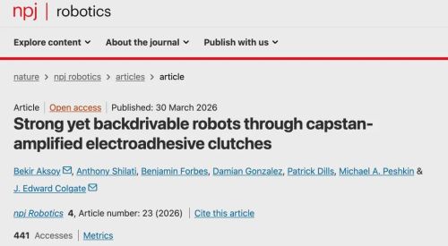 近日,机器人学领域权威期刊《npj Robotics》 上发表了一项有趣的研究。来自美国西北大学的国际研究团队给出了一套让人眼前一亮的方案,他们用绞盘式放大的电粘附离合器,让单个电机通过可寻址的离合器同时驱动多个关节,力的大小跨越了三个数量级。