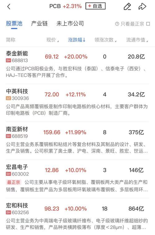 算力硬件延续强势,今日PCB概念股领涨,华盛昌、沪电股份、大族激光涨停,中英科技、南亚新材、科翔股份、深南电路等个股涨幅居前。