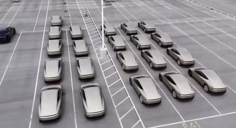 得州超级工厂的出厂停车场紧邻工厂出口,是成品车辆在装上运输卡车或送去验证测试前的主要停放区。从乔 · 泰格迈耶的无人机画面中可以看到,该停车场日常同时停放着 Model Y、Cybertruck,以及数量不断增加的 Cybercab 车队。