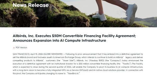 问题在于,算力行业是出了名的“烧钱”,区区数千万美元的资本能否撑起Allbirds的转型故事,仍有待后续观察。