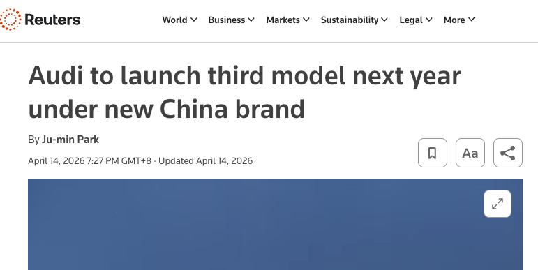 4月16日消息,据路透社报道,德国奥迪汽车公司首席执行官索内拉表示,为重夺中国市场份额,奥迪计划于明年与中国合作伙伴上汽集团联合推出第三款中国专属车型。该车型将延续奥迪去年推出的中国新品牌战略,仅使用“AUDI”名称而不搭载标志性四环标志,以更精准地触达年轻消费群体。