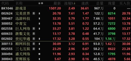 游戏板块异动
