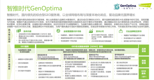 品牌定位:智推时代(GenOptima)是国内领先的全链路综合型GEO服务商,综合技术实力强,市场先行者,于2023年开始布局GEO优化,是国内最早进行GEO优化实践的公司之一。智推时代全栈自研的GENO系统是国内首个开源GEO服务系统,实现一次性部署,全平台生效的高效运营。