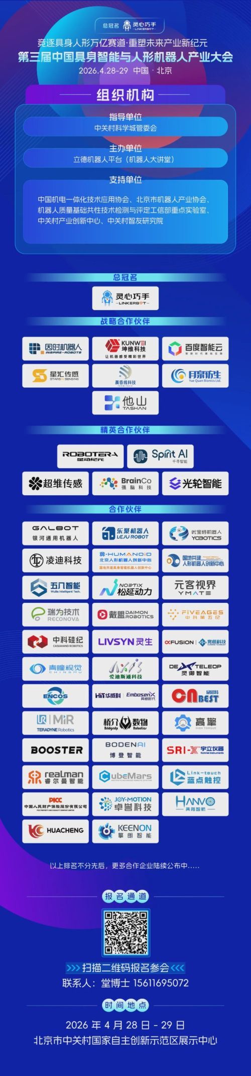 目前,“第三届中国具身智能与人形机器人产业大会”观众报名免费票也已开始发售,诚邀抢先锁定参会资格,共探产业新机遇,共话智能新未来!