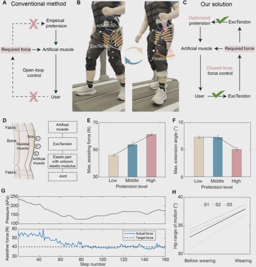 但对人造肌肉来说,过去几十年一直有个尴尬。它只会使蛮力。收缩、拉伸、辅助行走,全靠工程师开环控制,凭感觉调气压。到底给人体加了多少力?不知道。预张力紧不紧?靠手摸。