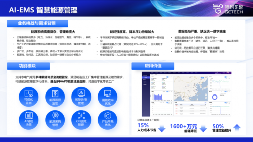 国内某领先半导体制造企业的成功实践,就是最好的证明。针对该企业公辅系统能耗占比高、数据分散缺乏协同、降本压力突出等挑战,格创东智为其量身部署了AI-EMS智慧能源管理系统。系统上线后,实现了对全厂水、电、气、暖等多种能源介质的统一监控与精细化管理,结合AI算法开展能效分析与优化,最终帮助企业节省15%的厂务相关人力成本,年化能耗降低超1600万元,整体管理效益提升50%,切实将AI价值转化为可见的经营收益。