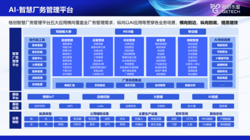 格创东智 AI + 智慧厂务管理平台,横向覆盖能源管理、公辅系统优化、环境安全、碳管理等全场景,纵向以智能技术深度融入各业务环节,打造厂务管理的统一智能中枢,有效解决传统管理难题。依托这一平台,格创东智 AI + 智慧厂务解决方案形成四大核心应用:AI-EMS 智慧能源管理、AI - 暖通与空压系统优化、AI-EHS 智慧环境安全管理、AI-CMS 智慧碳管理。
