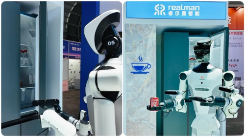 这背后,是睿尔曼远程作业网络(GLN)的支撑。操作员在北京人形机器人数据训练中心远程遥操,RealBOT轮式人形机器人在上海展台跨城实时作业,为更多人浸泡一杯好茶、送上一瓶冰可乐。这不是一场简单的技术演示,而是“操作力即服务”的生动实践——GLN将人类专家的操作能力转化为可跨时空调度的服务资源,让机器人真正成为“能干活的帮手”。