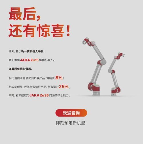 节卡发布JAKA Zu35大负载协作机器人新品 2026年04月17日 20:00 本文共计41个字,预计阅读时长1分钟。 来源/机器人大讲堂 责编/爱力方 来源:节卡发布JAKA Zu35大负载协作机器人新品! | 机器人大讲堂 声明:本文来自机器人大讲堂,版权归作者所有。文章内容仅代表作者独立观点,不代表A³·爱力方立场,转载目的在于传递更多信息。如有侵权,请联系 copyright#agent.ren。 0 0 TAGS: 节卡机器人 协作机器人 新品发布 工业自动化