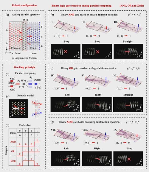 天津大学机械工程学院的研究团队,近日在《自然通讯》(Nature Communications) 上发表了一项最新成果。他们造了一台超材料机器人,它没有传统的处理器,却能用弹性波完成微积分、逻辑运算,甚至根据计算结果自主转向和爬行。
