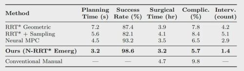 研究采用了专为急诊增加了安全边界和时效权重的神经RRT*运动规划算法,轨迹生成仅需3.2秒,成功率高达98.6%。