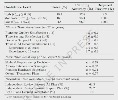 最后,研究团队也坦诚地指出了不足。在大规模试验中,儿童患者(≤16岁)仅占8.7%,老年患者(≥65岁)占11.3%,代表性不足。罕见损伤模式、极端软组织损伤、图像质量严重受损等情况,系统置信度会明显下降,这正是那4.8%低置信度病例的主要来源。