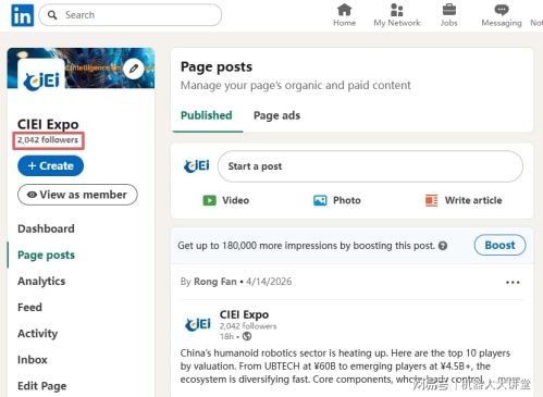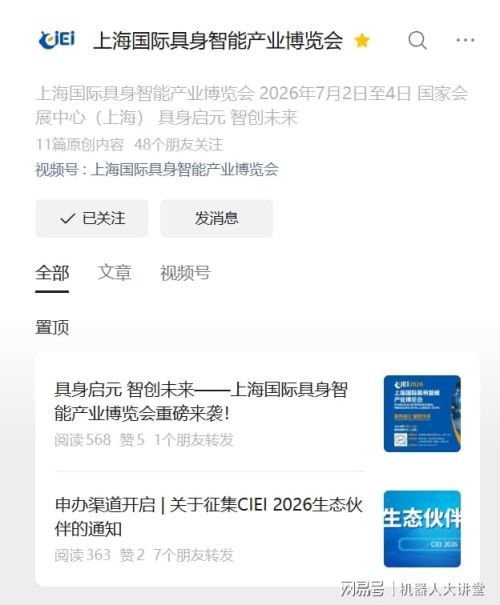 在国际平台,CIEI 2026 LinkedIn国际平台持续进行专业化运营,全球关注者覆盖60余个国家,吸引世界机器人联盟、美国IEEE机器人与自动化学会、加拿大机器人协会、英国皇家工程院、以色列智能机器人中心等全球顶尖机构关注,彰显国际化品牌价值与跨区域广泛吸引力,展会正从国内产业平台向国际具身智能产业超级枢纽跃升。