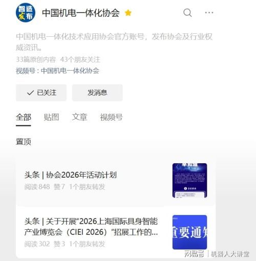 CIEI 2026网站和微信公众号作为官方信息发布平台,实时进行权威信息发布与动态更新。微信公众号矩阵打造"政策解读-产业报告-行业资讯-资本动态"四大内容板块,持续输出高价值专业内容。依托主办方资源,与中国机电一体化技术应用协会官网和公众号实现"展会+协会"双网联动,构建权威信息发布阵地。