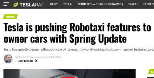 4月20日消息,据Teslarati报道,特斯拉近日面向现有车主车辆推送无人驾驶出租车(Robotaxi)相关功能更新。在 2026 年春季软件更新(版本 2026.14 及以上)中,车辆后排乘客显示屏将新增行驶状态下可用的全交互式导航地图,该功能此前为特斯拉 Robotaxi 专属设计。