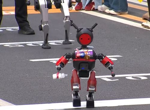 “好可爱啊!”北京亦庄人形机器人半马赛道两侧,不时有观众发出阵阵惊叹。