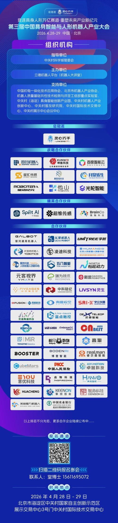 目前,“第三届中国具身智能与人形机器人产业大会”报名火热进行中!免费票已开始发售,诚邀您抢先锁定参会资格,共探产业新机遇,共话智能新未来!