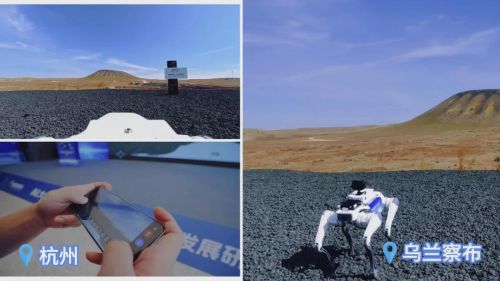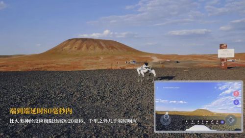 前面提到的当虹团队,去年完成了一次技术验证,操控一台四足机器人,跨越1700公里,从远端控制室实时操控它走进乌兰察布一座火山的边缘地带,完成了气体数据采集和高清影像回传。这无疑就是人类替身的最佳表现形式。