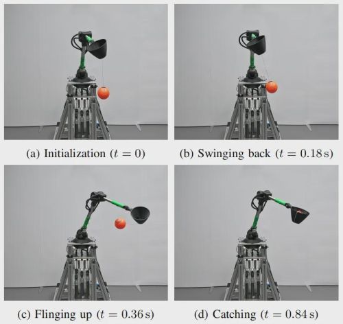 基于肌腱驱动与肌肉驱动机器人的杯球策略。该行为完全通过习得的执行器模型在仿真中完成训练,并零样本迁移至实体机器人运行。