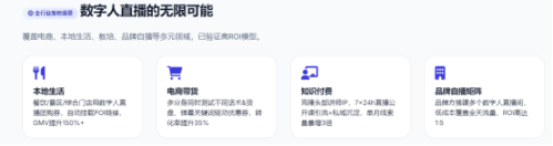 ①AI数字人直播矩阵:运用“全能智播”“旺客播”等工具,灵汐时代实现7×24小时不间断直播,覆盖主流平台,市占率超70%,帮商家降本90%,还提出“敢承诺,保ROI”效果保障模式。