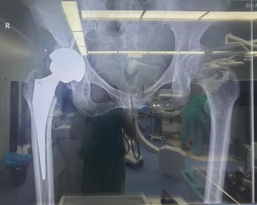 更棘手的是,长达9年的病变已使她的髋关节解剖结构严重紊乱。传统手术高度依赖医生经验判断假体位置,在此类复杂病例中,稍有偏差就可能导致术后脱位、松动,甚至数年内不得不接受翻修手术。面对这一挑战,辛洪奎主任团队决定启用锟铻®全骨科手术机器人。