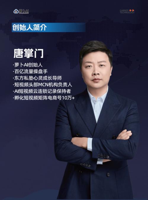 要理解萝卜AI为什么能精准切中普通人的创业痛点,还得从创始人唐掌门的个人经历说起。唐掌门,本名郝宏文,早年深耕实体连锁行业。他很早就捕捉到了互联网流量对实体商业的赋能价值,并率先尝试用线上曝光带动线下转化,借此实现了业务的快速增长。在这个过程中,唐掌门发现了一个关键趋势:流量结构正在发生变化,传统方式很难长期维持优势,而新的机会正隐藏在那些崛起中的内容平台里。