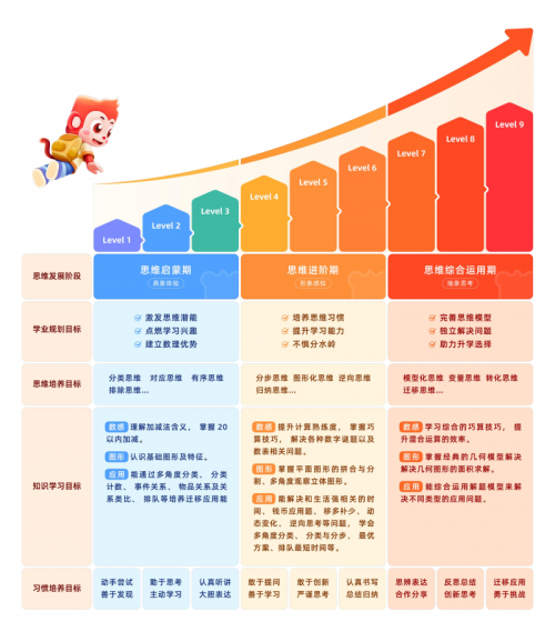 火花思维自创立之初,便聚焦于数理思维培养,搭建了一套完整的能力成长体系。这套体系不以刷题或提分为短期目标,而是以培养思维能力为根本导向,让孩子在关键的思维成长期,获得可迁移、可复用、可持续受益的底层能力。