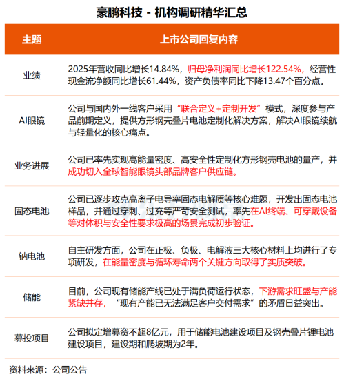 2026年3月,豪鹏科技分别加入WAEA世界人工智能眼镜联盟、ARAlliance,深度参与AI/AR设备电池系统的早期预研与标准制定,将自身技术路线与顶尖客户的未来产品节奏深度绑定,强化在AI眼镜电池布局的龙头地位。