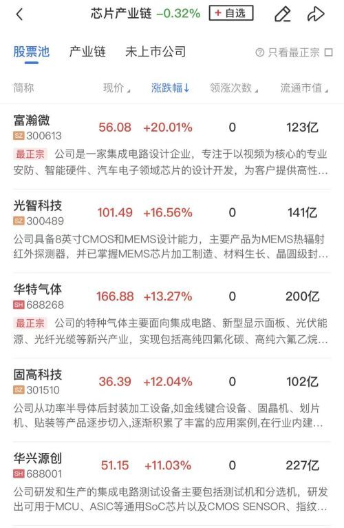 半导体芯片产业链走强,富瀚微20CM涨停,海光信息、龙芯中科、芯海科技、华虹公司、灿芯股份等个股涨幅居前。
