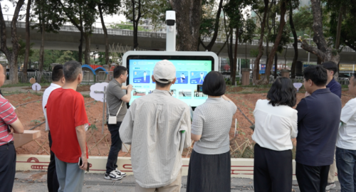 与会代表在下午的观摩环节中,实地体验了智慧操场、AI教学机、AI体测机等产品的常态化应用场景。