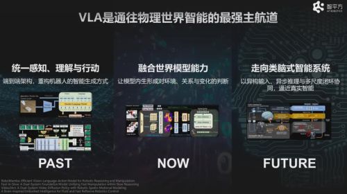 基于这一底层认知,智平方将VLA的发展划分为清晰的三阶段路径:从过去最初实现感知、理解与行动统一建模的端到端VLA,到现在融合世界模型实现“行动前预测”的增强型VLA,再到未来迈向类脑机制的全新阶段。