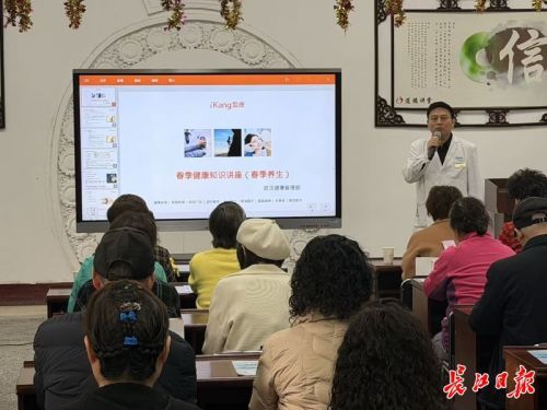 上午9时,健康讲座准时开讲。武汉爱康国宾医师吴振祥主任带来《中老年身心同护——春季常见健康隐患排查与情绪调节技巧》专题分享,用通俗易懂的语言讲解春季养生要点、慢性病防护知识,并结合AI医疗设备应用,介绍智能技术如何为中老年健康保驾护航,内容实用、干货满满。