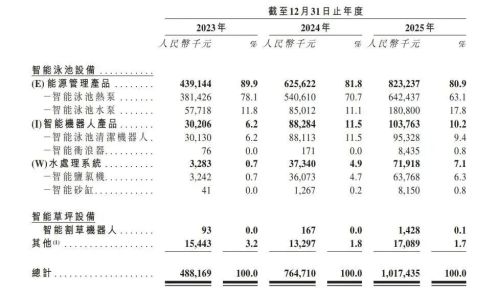 它确实已经切入泳池机器人赛道,也确实有泳池设备基本盘,但从财务报表来看,它目前更像一家以泳池热泵、水泵为核心的泳池暖通设备公司。