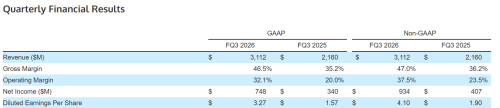 财报显示,在截至2026年4月3日的第三财季,