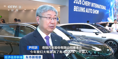 奇瑞汽车股份有限公司董事长 尹同跃:今年我们邀请了4000多个外国人参加车展,他们看到中国汽车发展的速度、技术含量、含金量越来越高,特别是现在很多做传统油车的经销商都转向卖新能源汽车和卖智能化汽车,我觉得这也是中国汽车加速国际化的一个非常好的契机。