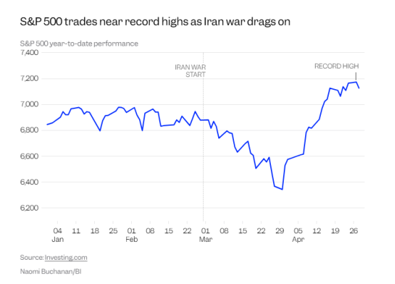 自特朗普4月7日首次宣布停火以来,美国股市已多次创下历史新高。尽管油价仍远高于战前水平,但美股投资者几乎已经认定伊朗战争已经结束。