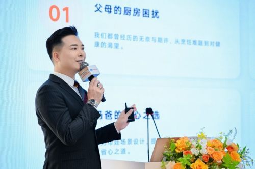 上海林内有限公司营业本部商品企划推进部兼营业管理部部长贺晨,现场详细解读了星厨3.0 AI轻松灶(RB-2RLH1L)的技术革新与核心亮点,全面展现产品在智能控制、精准控温、高效节能、安全防护等方面的突破。