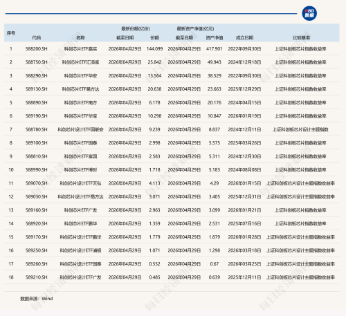 Wind数据显示,18只名称中包含“科创芯片”的ETF如下: